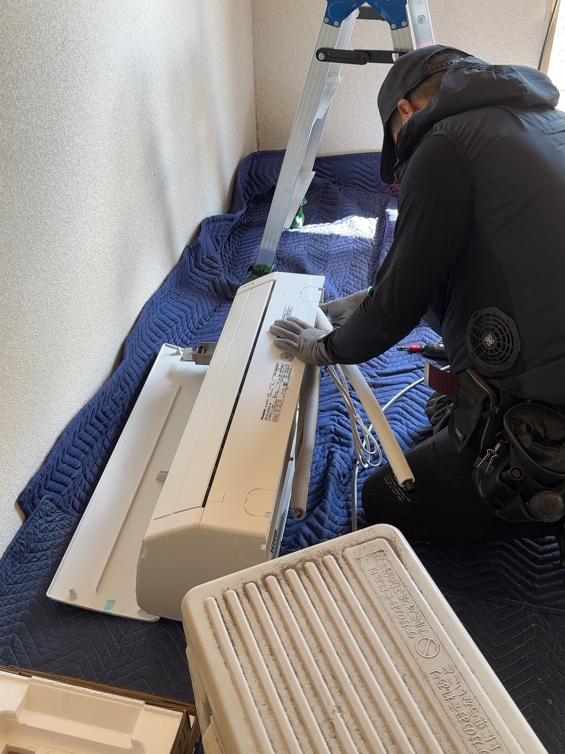 新規取付工事1台、交換工事1台を行いました。新規取付工事では、専用回路増設も行いました。